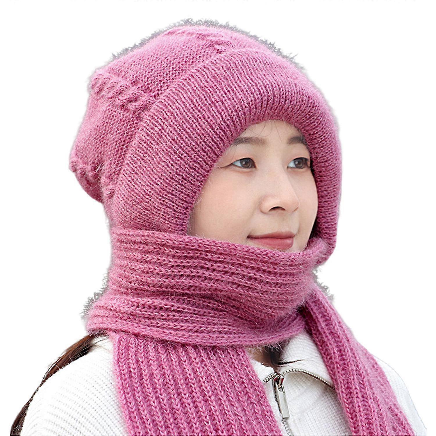 Knitted Hat 2 in 1 Multifunctional Thickened Stretchy Soft Ears Protection Solid Color Windproof
