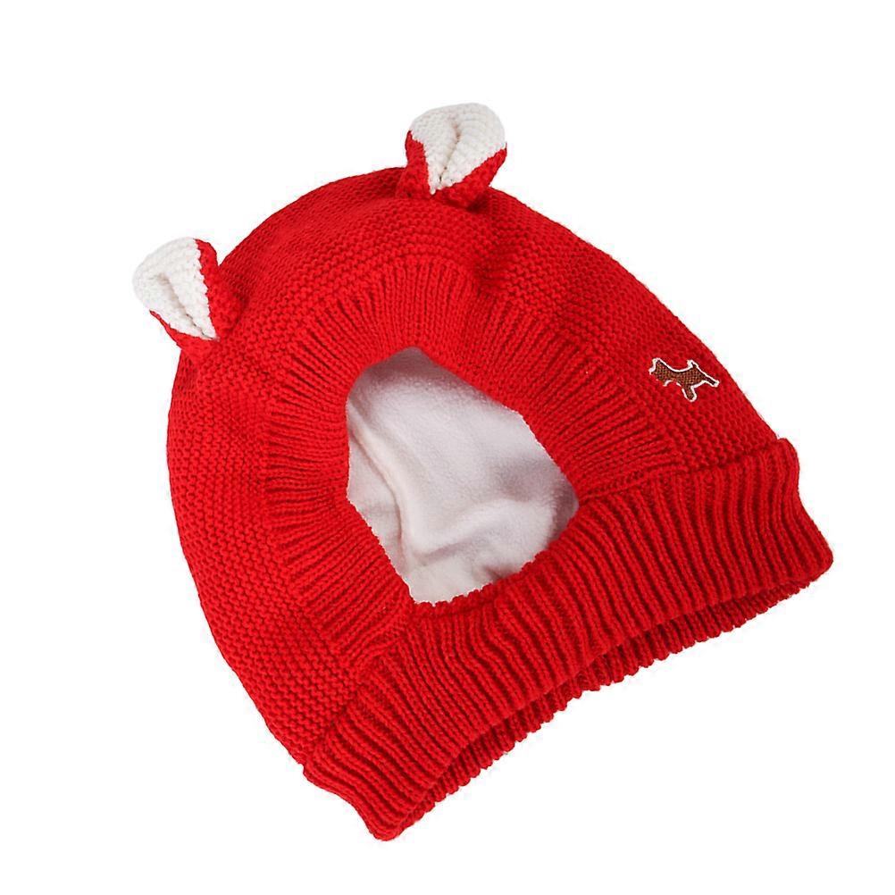 Knitted Rabbit Ear Dog Hat Winter Warm Photo Prop for Puppies Size 1 Soft Red Material 1Pcs