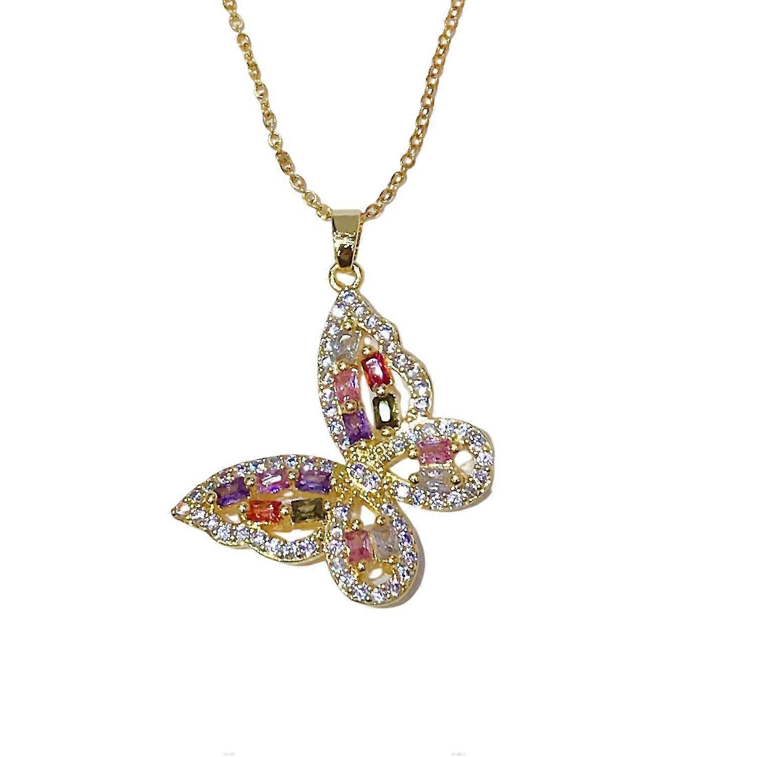 Pendant Necklace Shining Faux Zircon Personality Light Luxury Decorate Female Fashion Butterfly Pend