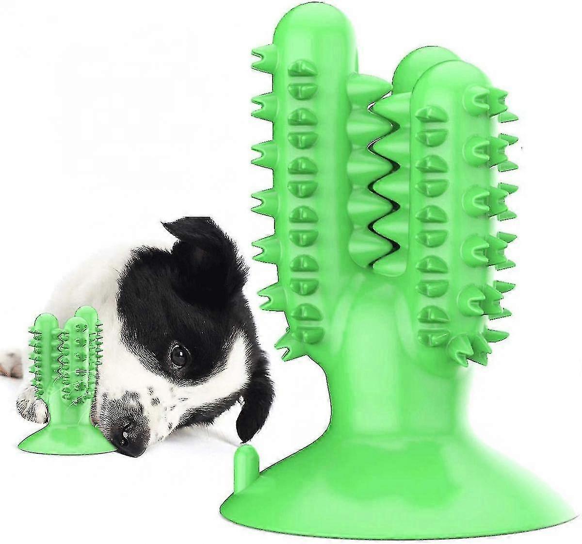 Dog Toothbrush Chew Toys 2020 Upgraded Cactus Puppy Teeth Cleaning Stick With Suction Cup - Natural Rubber Dental Care Toothbrush,green