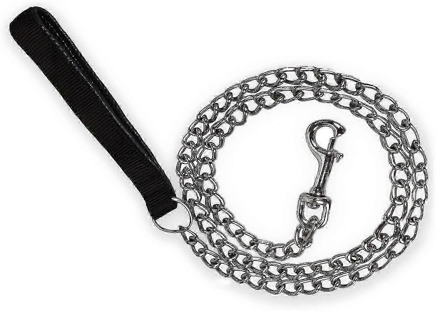 Dog Chain Leash Steel Heavy Duty Dog Leash Pu Leather Handle 120cm