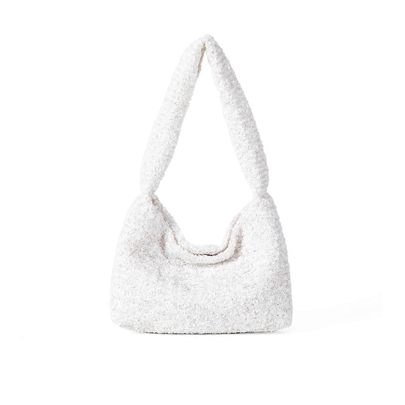 Korean Styles Shoulder Bag Large Capacity Underarm Bag Shopping Bag Sequins Evening Bag Handbag Purse Stylish Armpit Bag White