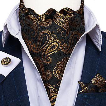 % 100 İpek Lüks Erkek Kravatları Çiçek Siyah Altın Kravatlar Paisley Kravat Cep Kare Kol Düğmeleri Seti Erkek Düğün Parti Kravat