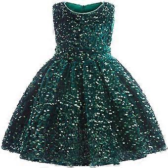 Küçük Kız Pullu Örgü Tül Elbise Kolsuz Çiçek Parti Balo Elbisesi