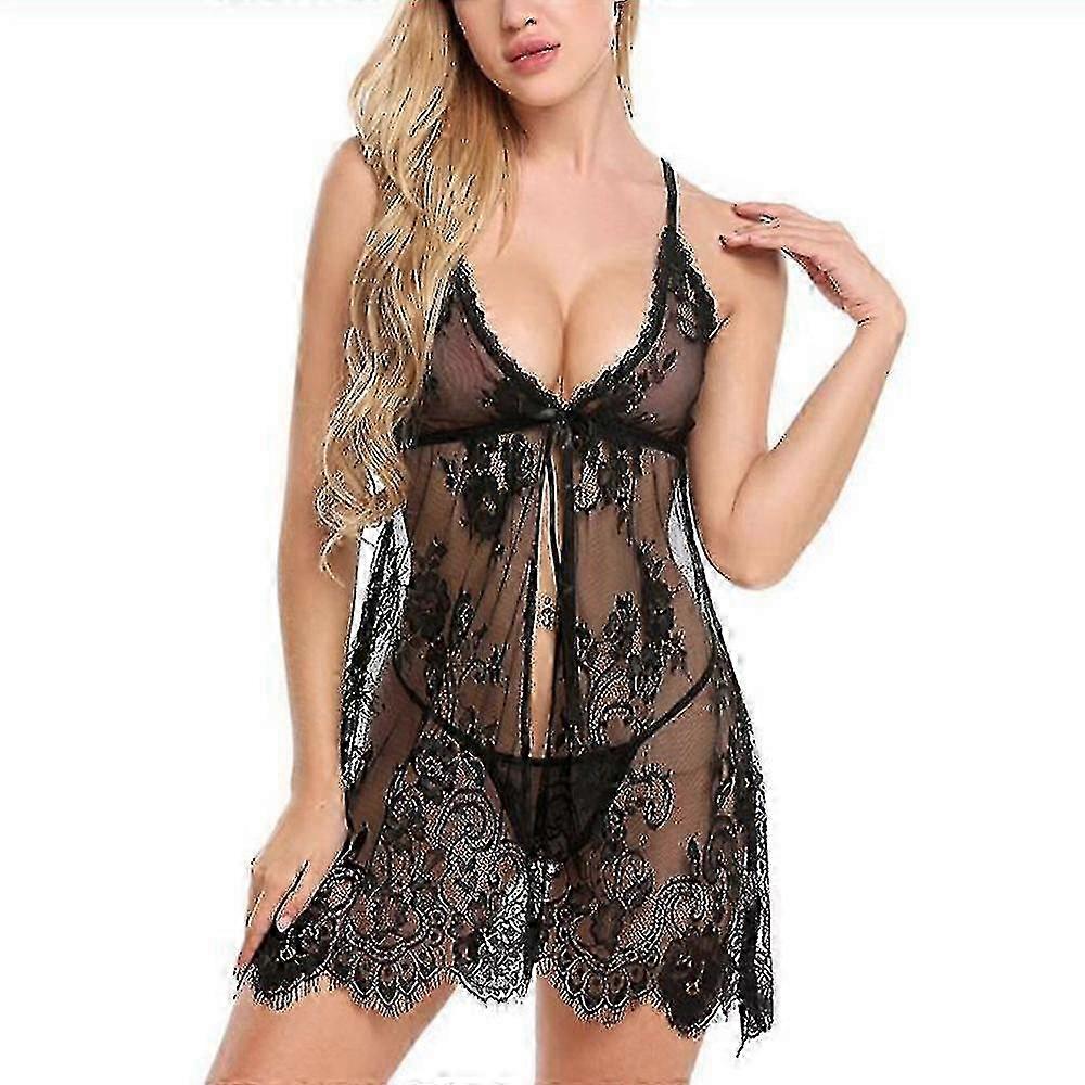 Lace TrimmedSexy Underwear with Open Front Thong Set for Sleepwear