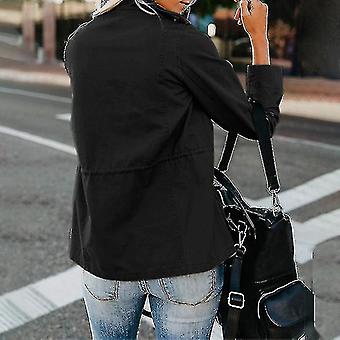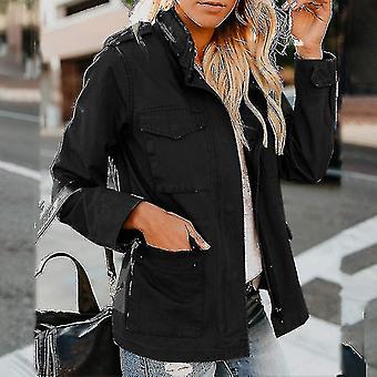 Ladies Snap Buttons Jacket Streetwear Fall Coat Long Sleeve Utility Jackets