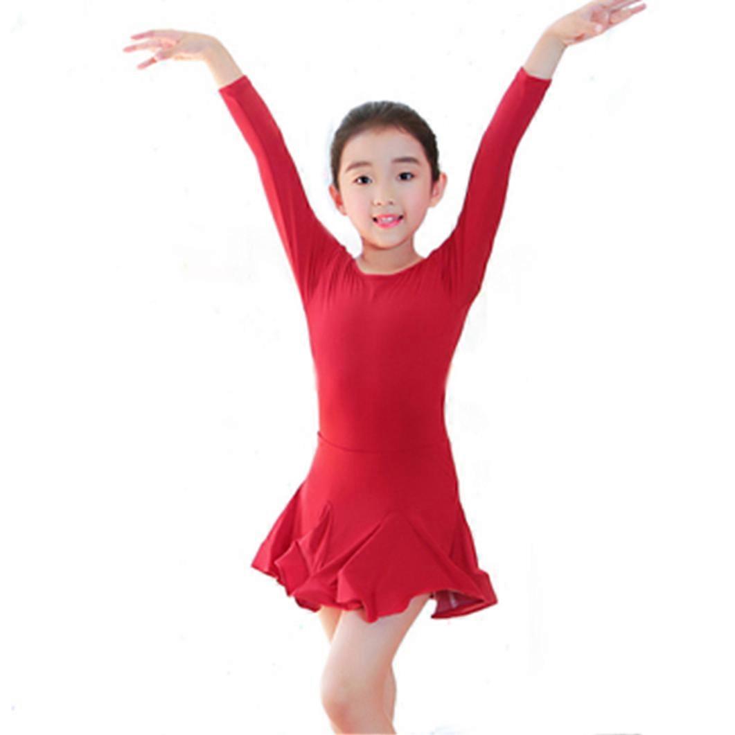 Latin Dance Skirts Children's Girls Ballet Costumes Dance Practice Costumes Long Sleeve Dresses Performance Costumes