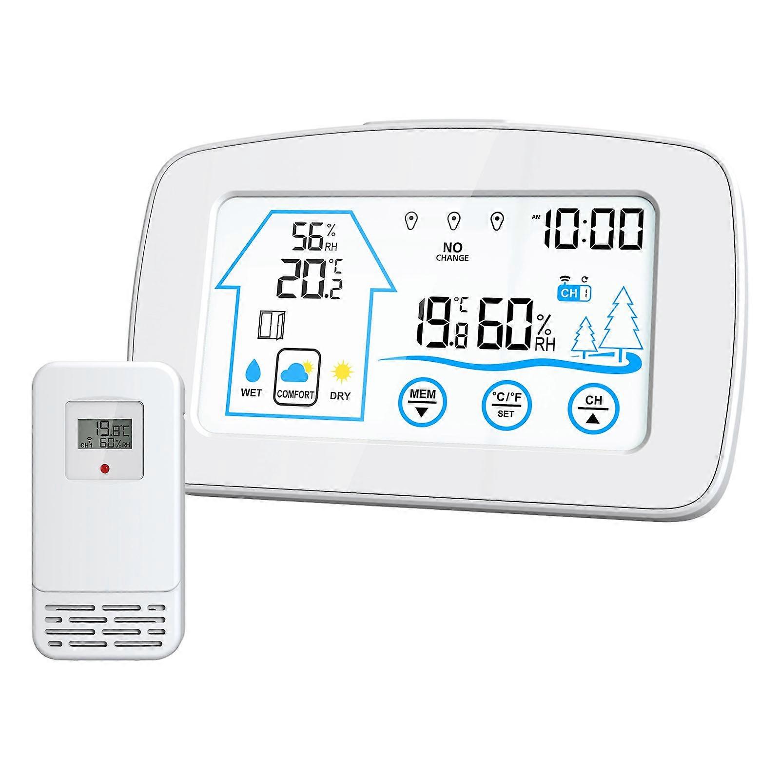 LCD Color Display Wireless Thermometers Hygrometer Indoor Outdoor Use Unit Switchable Humidity Sensors White