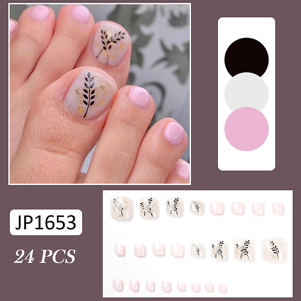 Leaf Printed Square False Toenail Tips Long Lasting Safe Material Waterproof False Nails