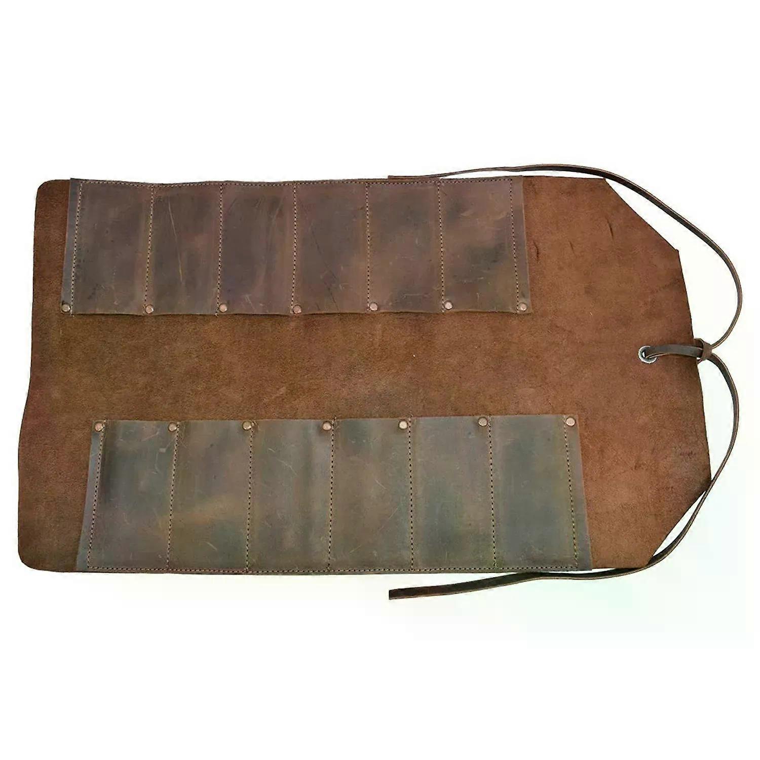 Leather Big Tool Roll Up Bag (12 Slots) Portable Carry on Pouch Workshop Storage Woodworking Tools Organizer Handmade