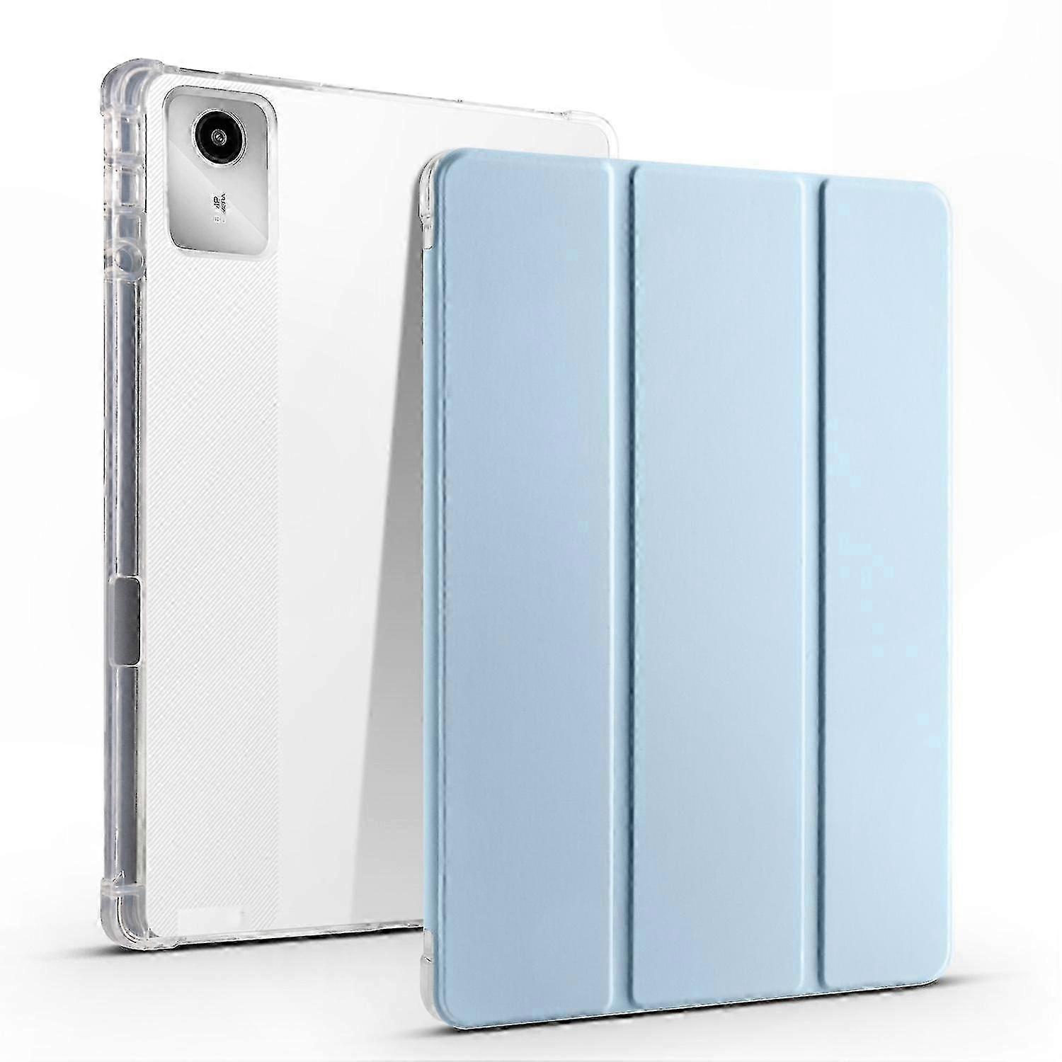 3-Fold Clear TPU Leather Tablet Case with Pen Slot 1. Precision-designed to fit your tablet PC perfectly. 2. Made of durable PU leather and TPU material. 3. Built-in stand enables convenient horizontal viewing. 4. Provides protection against everyday scratches, dirt, tears, and wear. 5. Full access to all buttons and ports.