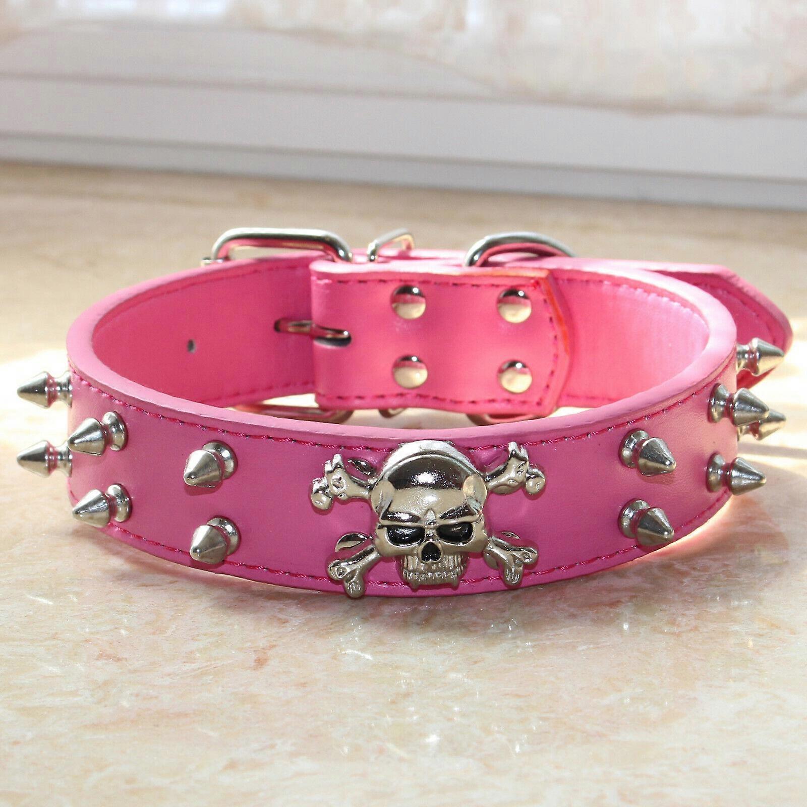 Leather Skull Spiked Studded Dog Collar for Medium & Large Dog Pit Bull Terrier