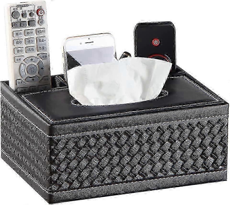 Leather Weave Tissue Box with Remote Control Holder