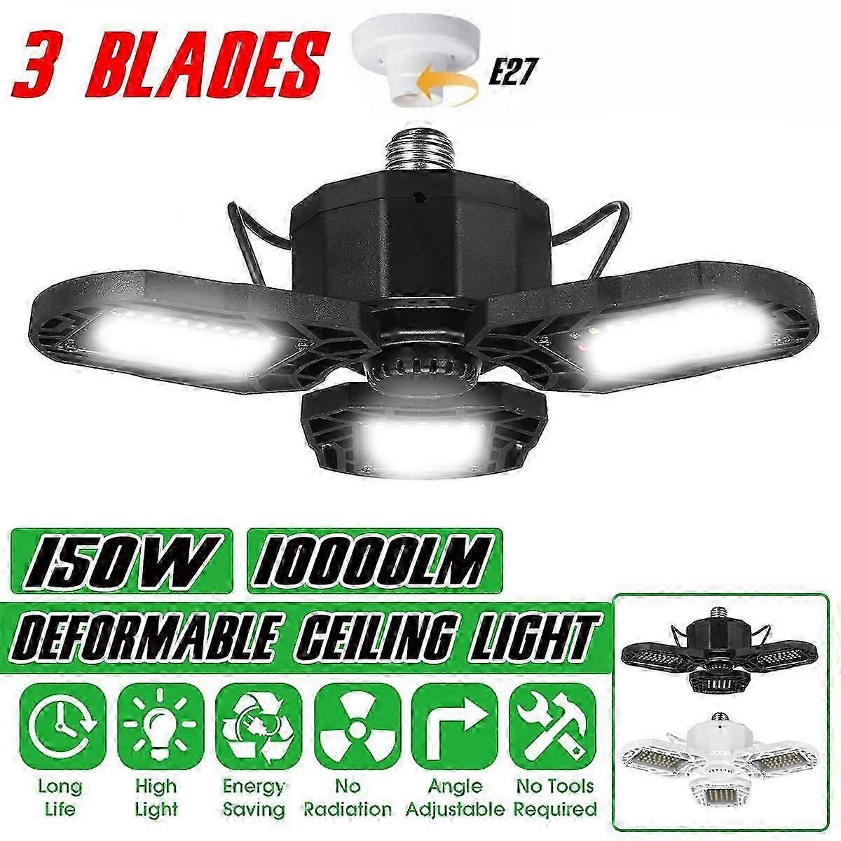 LED Garage Light 150/200W Deformable Ceiling Fan Light Blade Bulb E27 Waterproof for Warehouse Workshop Home Industrial Lighting