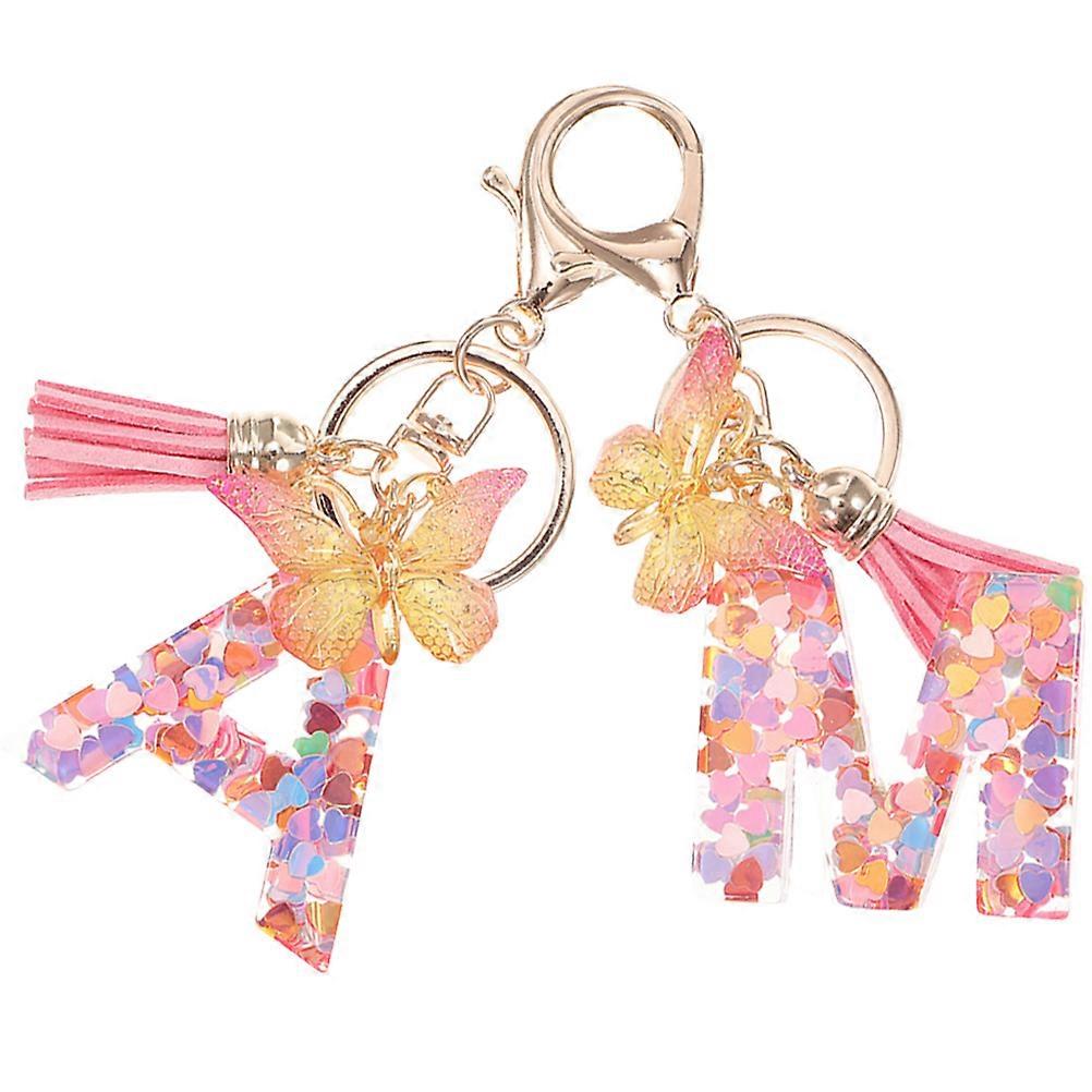 Letter Keychain 2Pcs Butterfly Keychain Perfect For Home Use And Car Keys Featuring Assorted Color And Decorative Design