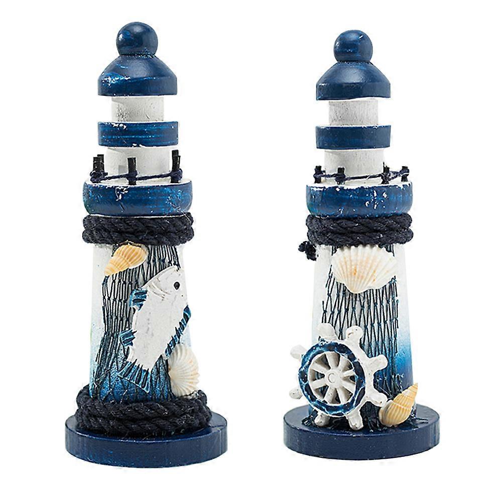 Lighthouse Decoration 2Pcs Wooden Ornament For Home Decor Featuring Elegant Design In Blue Color With Decorative Function