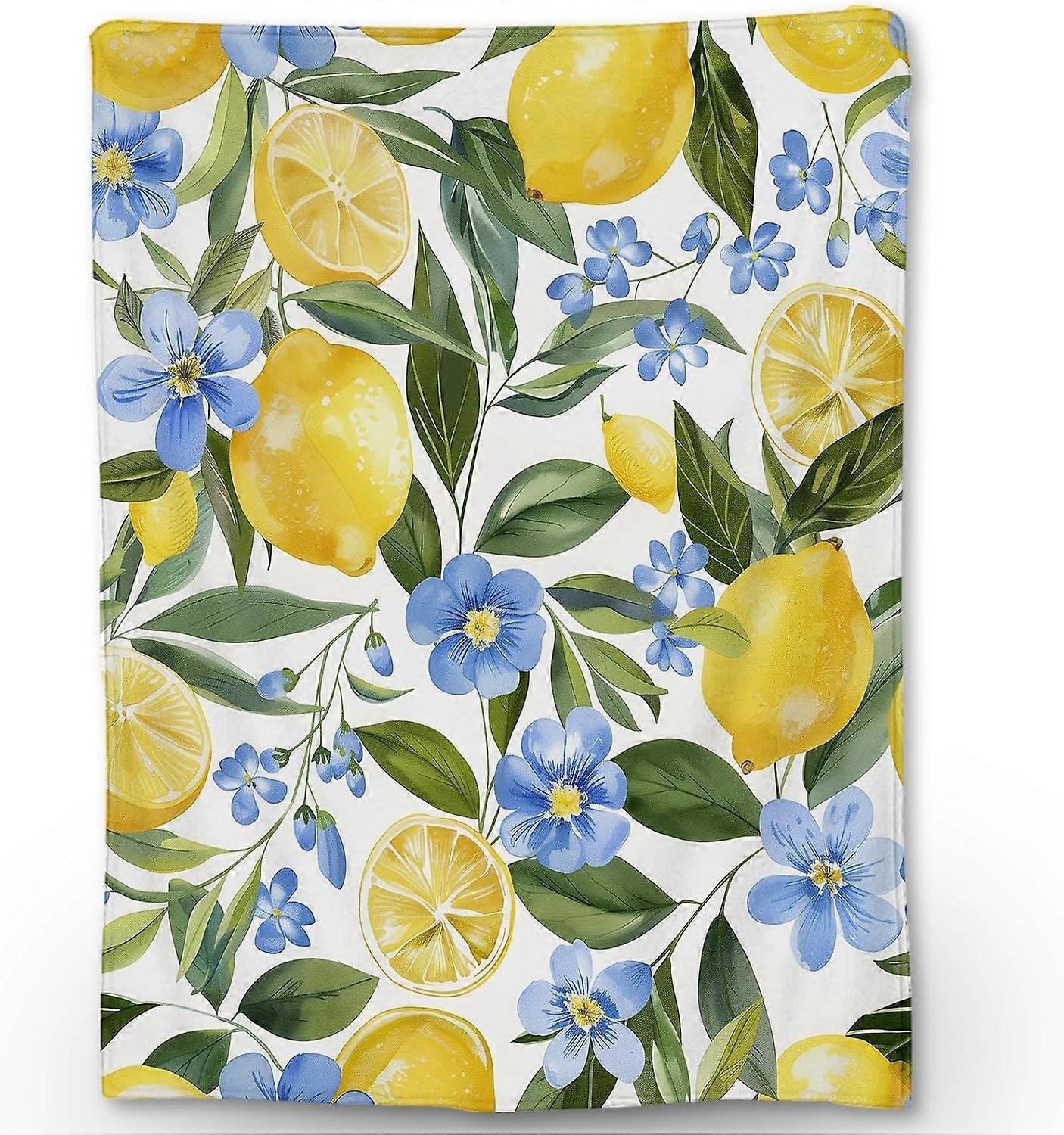 Lemon & Flowers Blanket, Soft Fuzzy Lightweight Flannel Throw Blanket Perfect for Couch, Bed, Travel & Outdoor Use, Warm Fluffy Cozy Decor Blankets fo