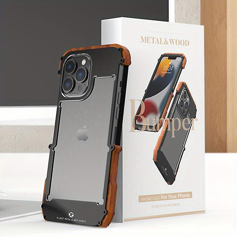Luxury Metal & Wood 2 In 1 Phone Bumper For Iphone 14 Pro Max 14 Plus 13 Mini 13 Pro Max Breathable Cool Shockproof Phne Frame Back Cover With Screws