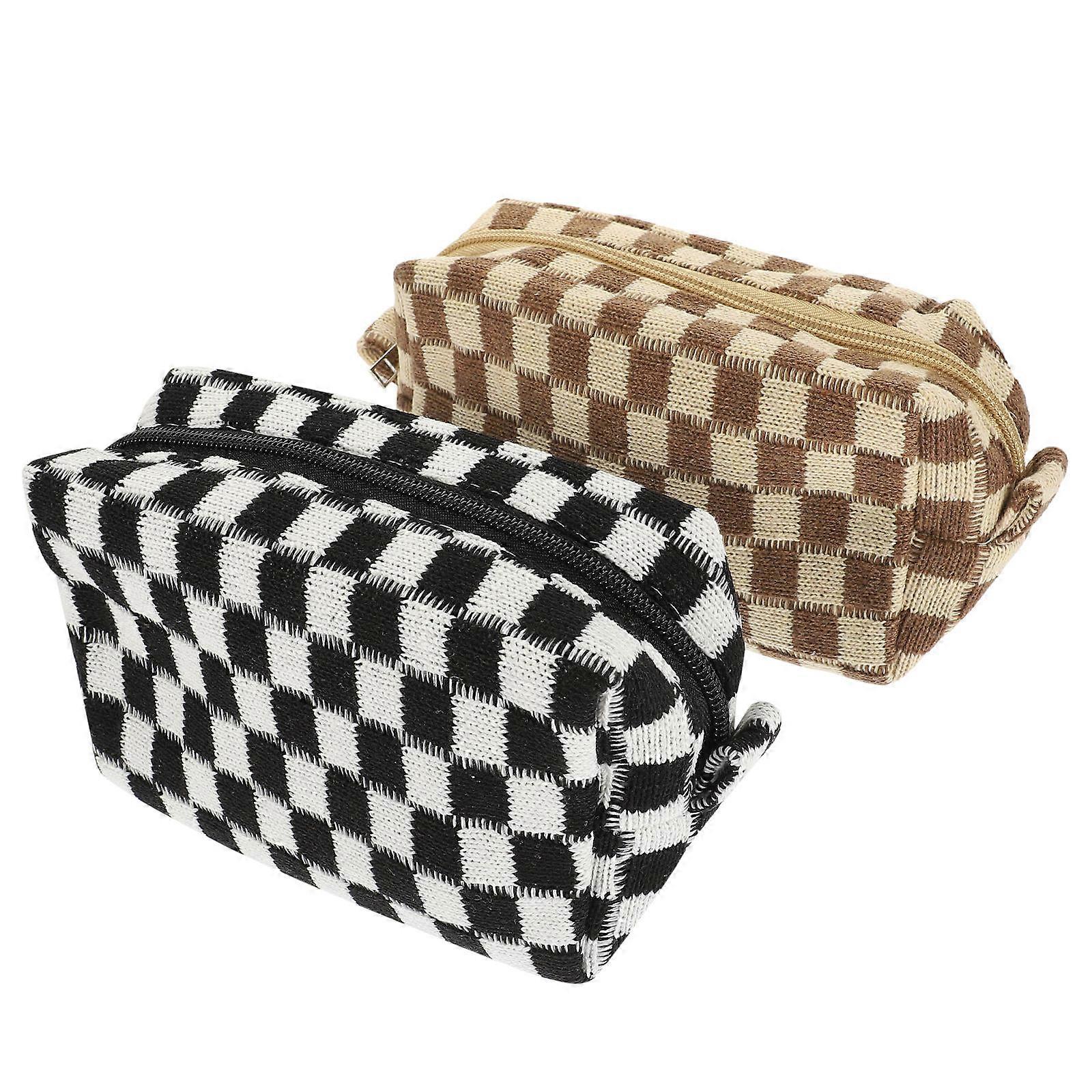 Makeup Bag Travel Small Makeup Pouch Checkered Rectangular Storage 2Pcs