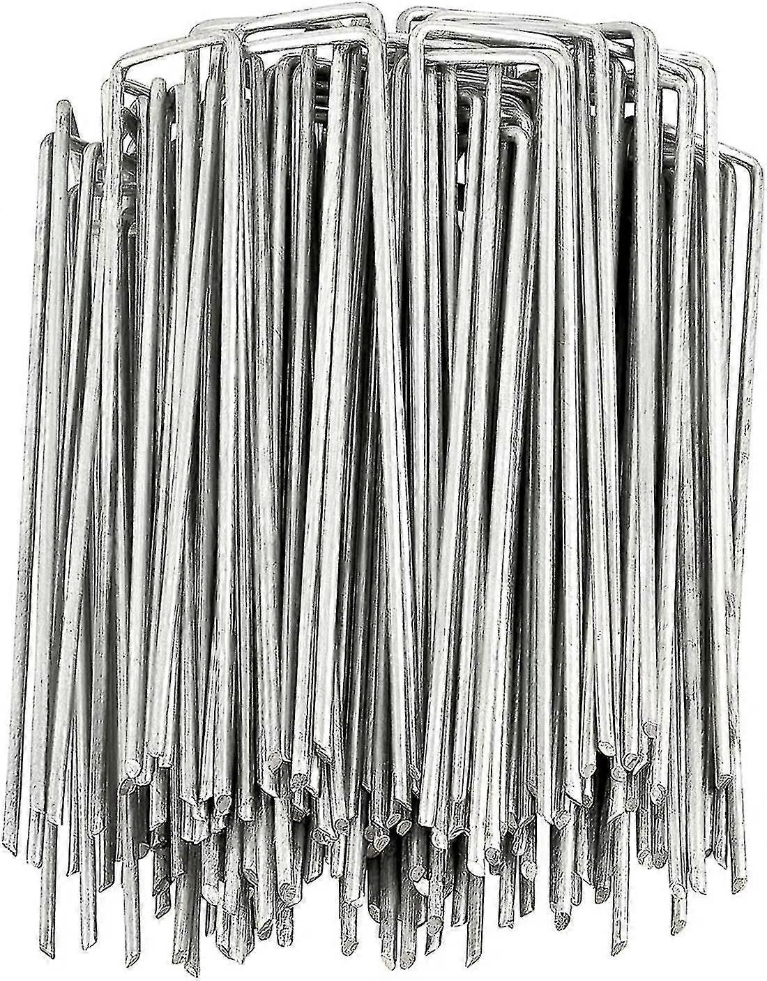 Packaging and Size: 50 pieces of fixing stakes for mulch fabric the garden stakes have a diameter of 3 mm, length of 150 mm and width of 40 mm.Robust materials: U-shaped garden stakes are made of super compression-resistant galvanized steel, the nail diameter is improved 3mm thick, which is stronger and more durable than the traditional 2.5mm, easy to rust and easy to deform .Easy Install: The beveled metal end of the stake sardines is very sharp and the cut is trapzodal designs, they can increase the tension in the soil to make it faster and easier to insert into the ground. soil, and will not bend when pushed into lawns or other hard materials.Reusable: U-shaped ground anchors can very easily be inserted into the soil with less force, which makes it easier to fix the weed tissue, is easy to fix or remove even on hard ground without spending a lot of time. The garden staples are highly reusable and have a long lifespan.Multi-purpose: U-shaped stakes are widely used to secure weed fabric coverings, landscape fabrics, bird / worm netting, garden membranes, garden hoses, tarpaulins, artificial turf, anti-freeze fabrics, fences, pipes, sardines camping, lawn protection nets, etc.