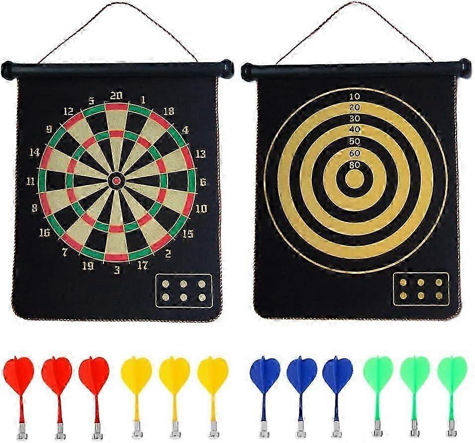 Magnetic Dart Board, Indoor Outdoor Dart Games for Kids with 12pcs Magnetic Darts, Safety Toy Games, Rollup Double Sided Board Game Set for Gifts