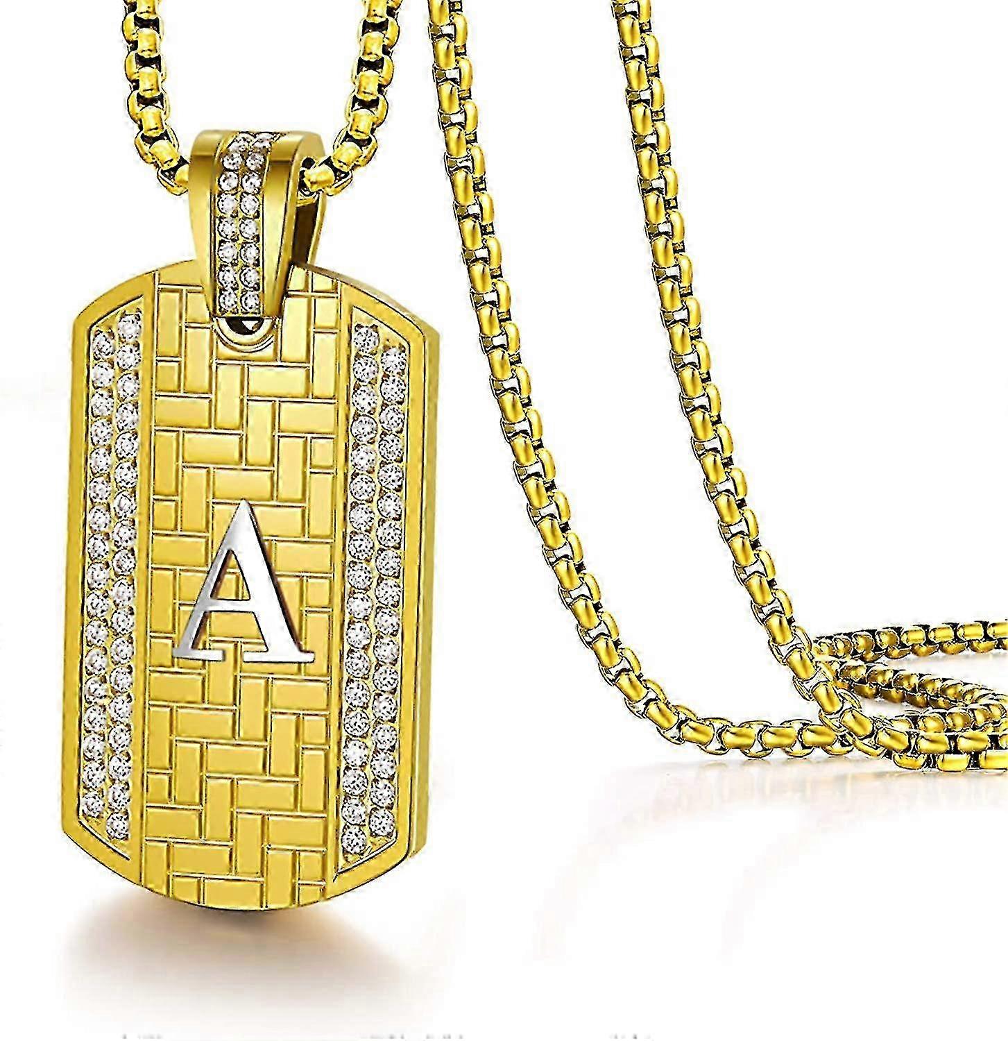 Letter Necklace,alloy Pendant Necklaces Hip Hop Diamond Square Chain Jewelry Gifts For Men Boys Valentine Day Gifts