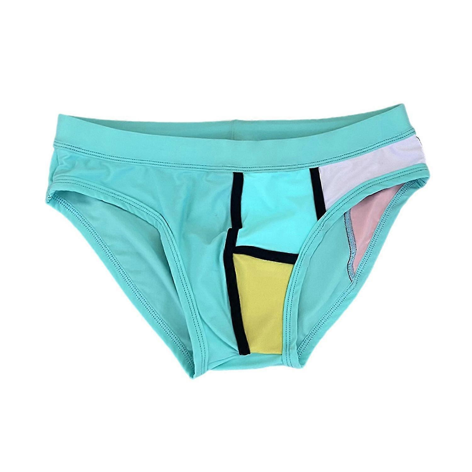 Men Swimming Trunks Elastic Soft Quick Dry Breathable Slim Fit Color Matching Mid Waist Bathing Brie