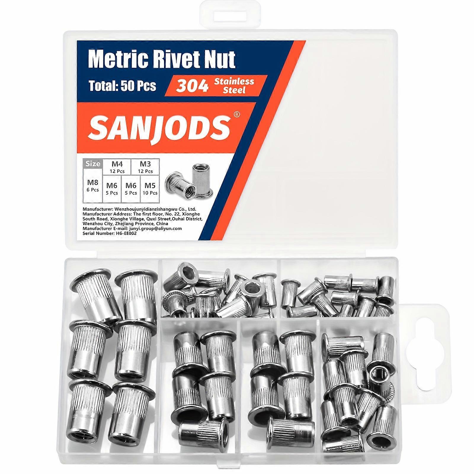Metric Rivet Nut Assortment Kit (50Pcs/120Pcs) - M3 M4 M5 M6 M8 M10 Flat Head Rivnut 304 Stainless Steel Threaded Insert Nut Set
