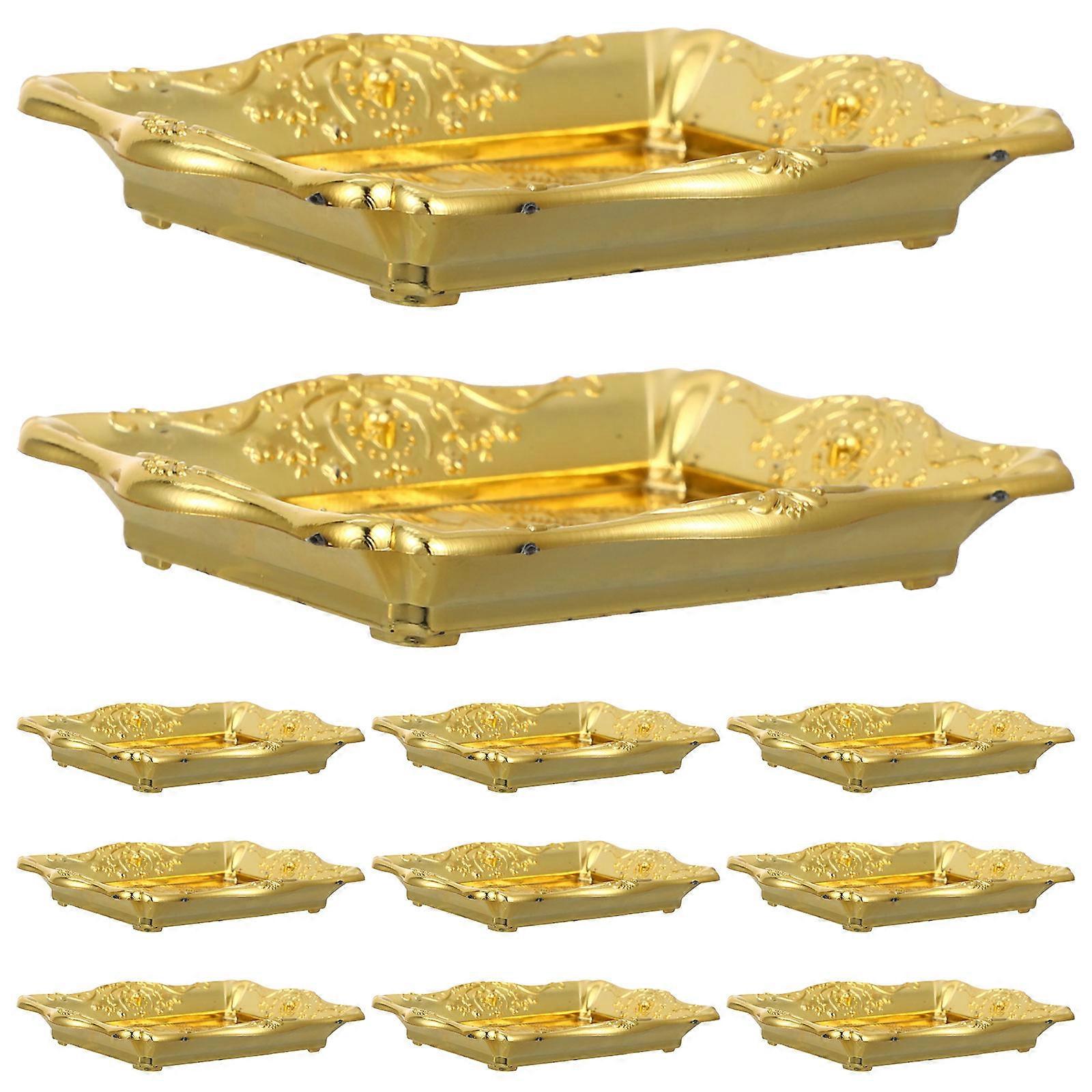 Fruit Trays Small Tray Pastry Western Style Dessert Plate Golden Rectangular 10.50X7.50X1.50CM Sturdy Displaying Food 12Pcs