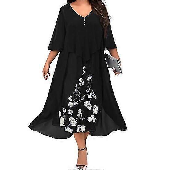 Midi Dress Swing Up Large Hem Trendy Floral Pattern Female Long for Work