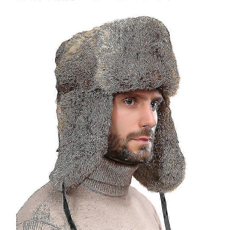 Mimigo Russian Winter Hat with Rabbit Fur, Trapper Style Bomber Hat for Men with Ear Flaps as a Christmas Gift