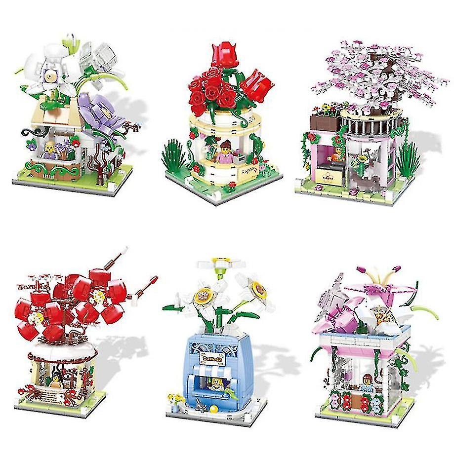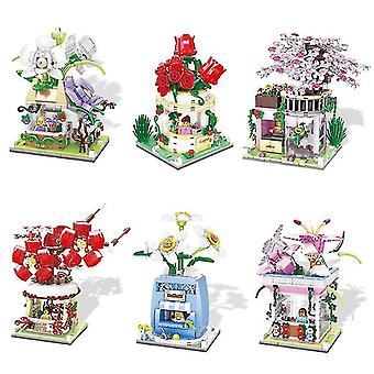 Mini Diamond Building Block City Flower House Shop Bricks Rose Orchid Plum Cherry Blossoms Narcissus Lily Florist Toy c