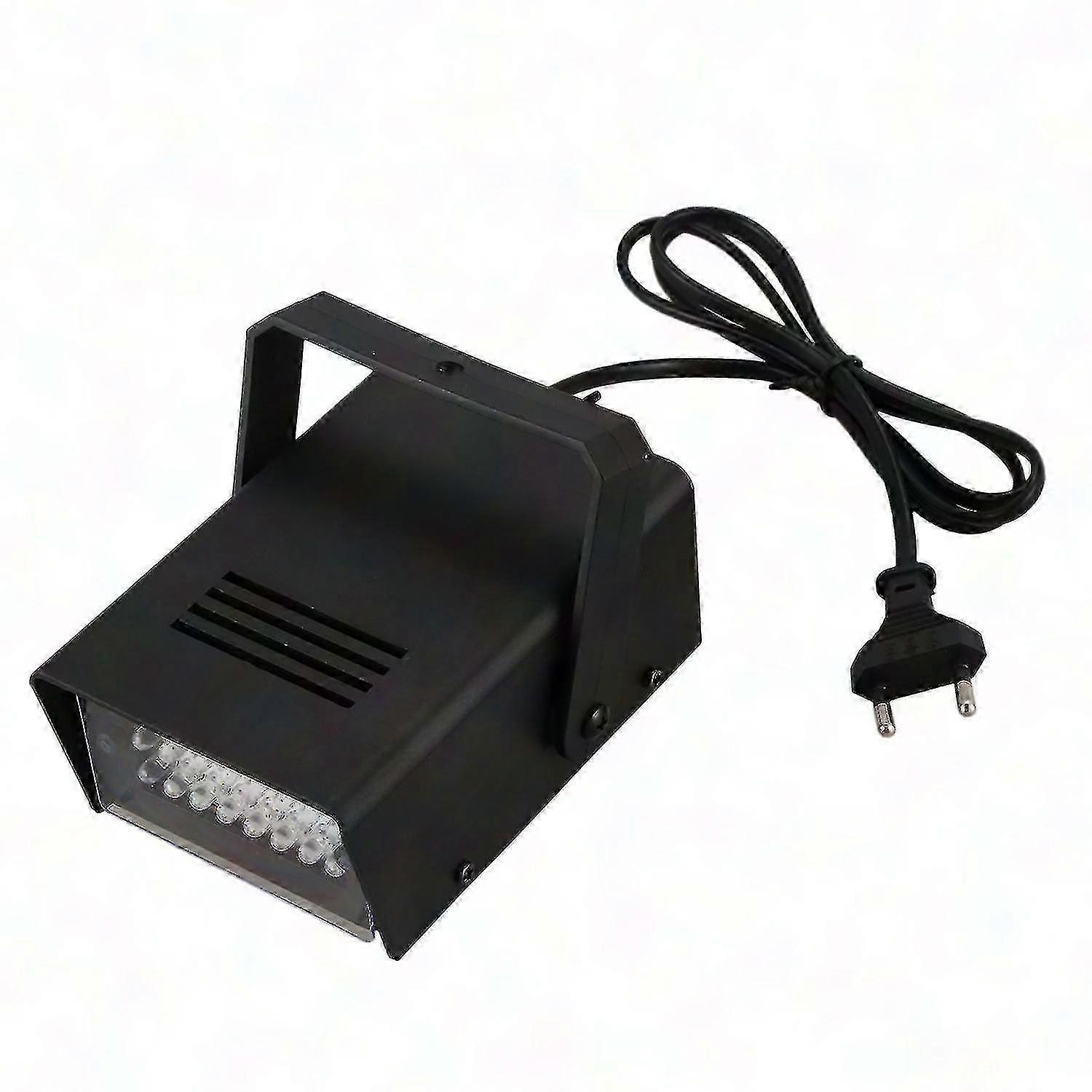 Stage lampEquipped with 24 pieces super bright 5 mm LEDsAdjustable flash rateEnergy savingCan work round the clockMaterial: engineering plastic24 x 5 mm LEDs DIPLight Colour: WhiteOperating Voltage: AC 100 - 240VPower: 5WThe connector from the power cord is made according to EU specification.Length from the power cord 1,2 m.Dimensions: 12.5 x 9.5 x 8.5 cmSpecial Feature: The flash rate can be adjusted by a frequency knob on the back.Scope of flash rate: 1 - 10 times/ seconddelivery: 1 x strobeNote:Light shooting and different displays may cause the color of the item in the picture a little different from the real thing. The measurement allowed error is +/- 1-3 cm.