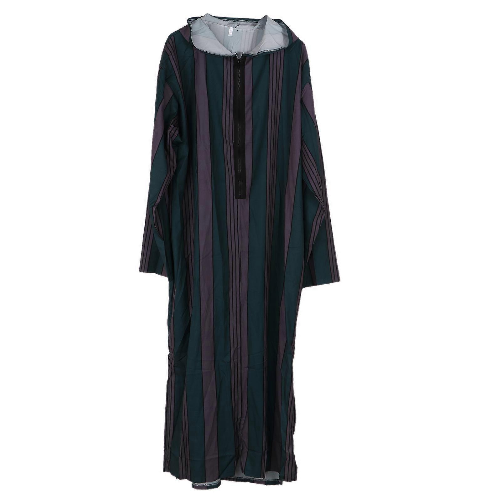 Fashion Men Ethnic Style Shirt Ramadan Gown Moroccan Robe Striped Long Thobe