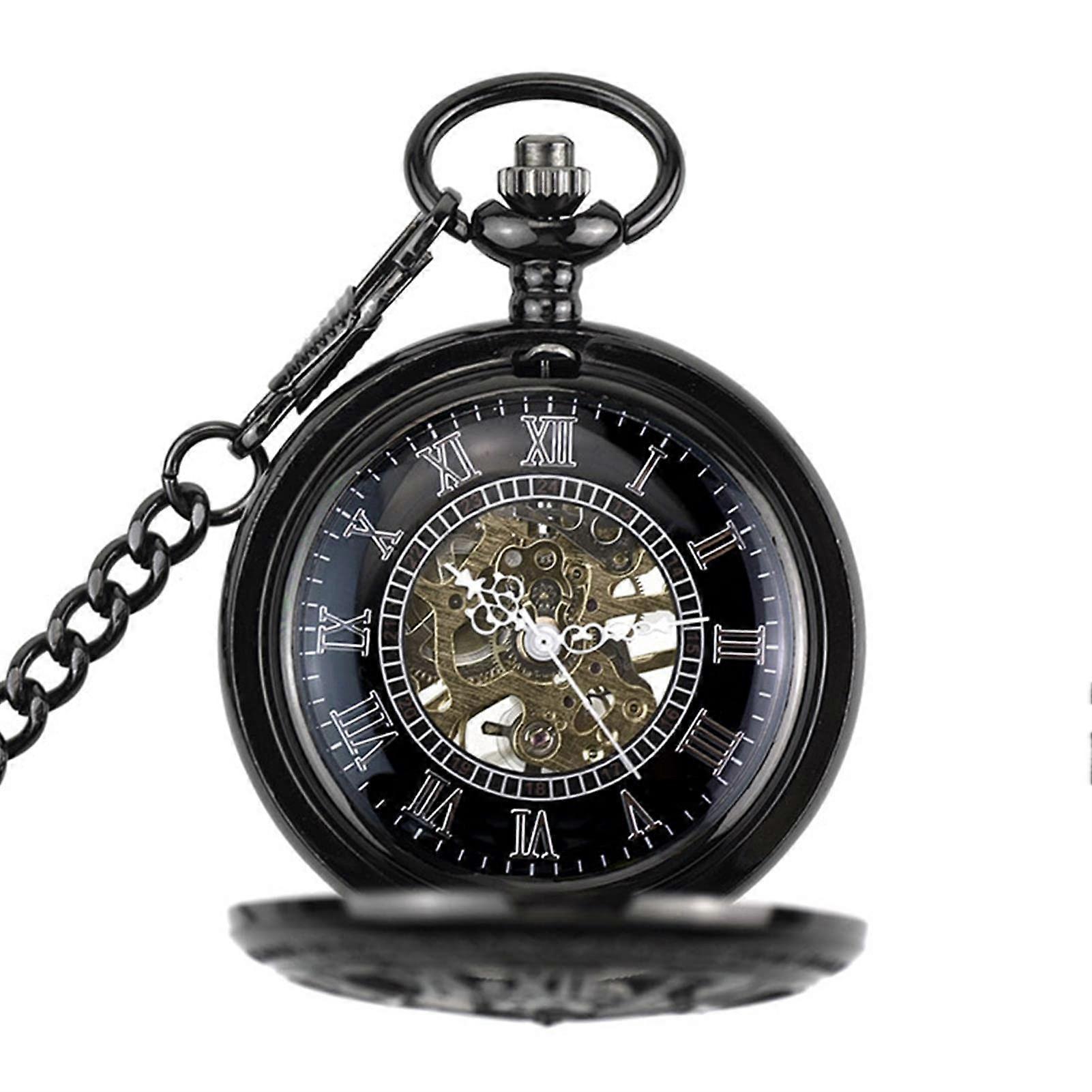 Modern Pocket Watch, Retro Quartz Pocket Watch Antique Skeleton Mechanical Men Steampunk Mechanical Fob Watches Watch Pendant Hand Winding Black