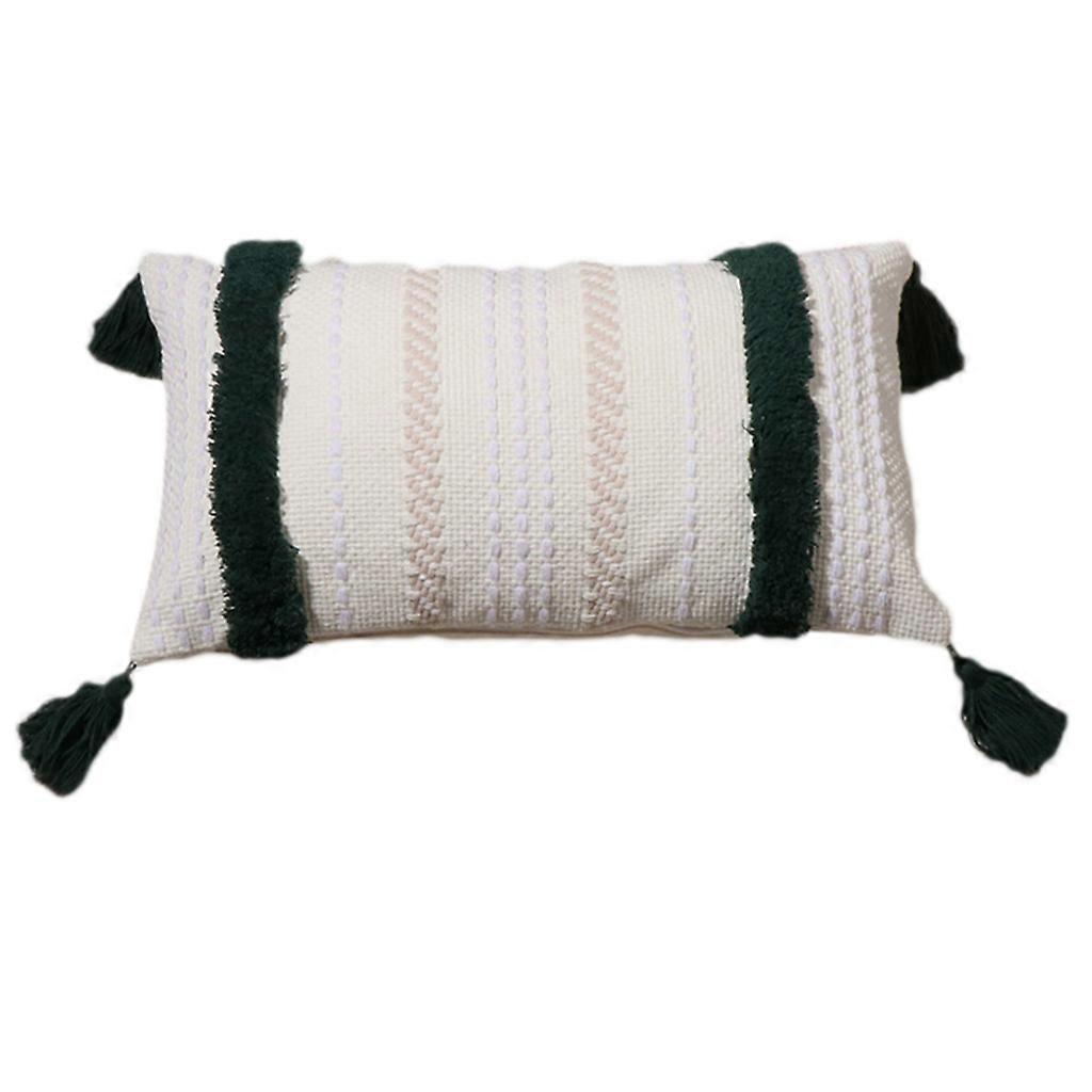 Moroccan Lumbar Pillow for Case Tassel Boho Tufted Embroidery Striped Cushion Co