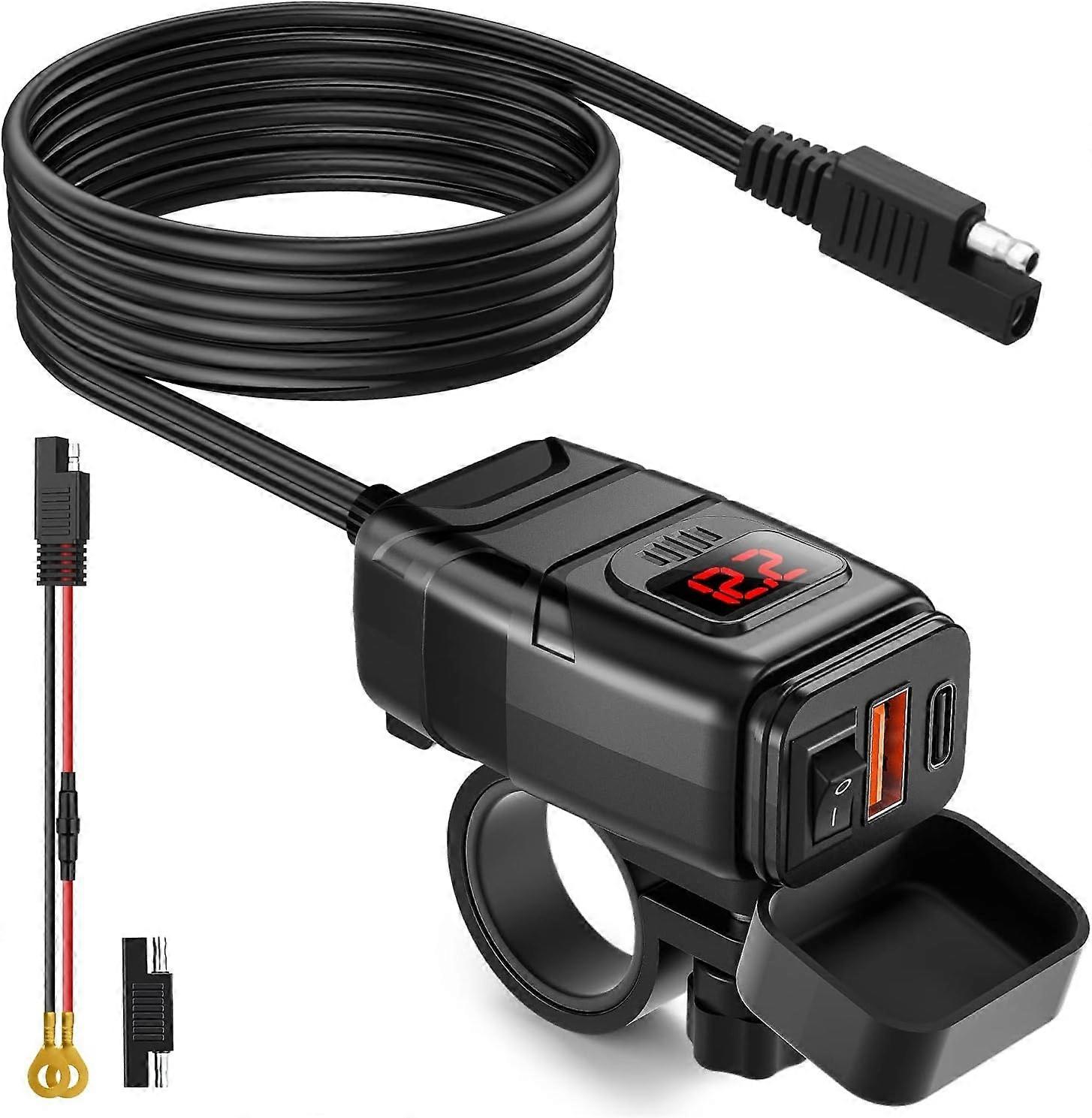Motorcycle Phone Charger, 6.4A Dual Usb Type C Pd & Quick Charge 3.0 Motorcycle Usb Charger With Vol