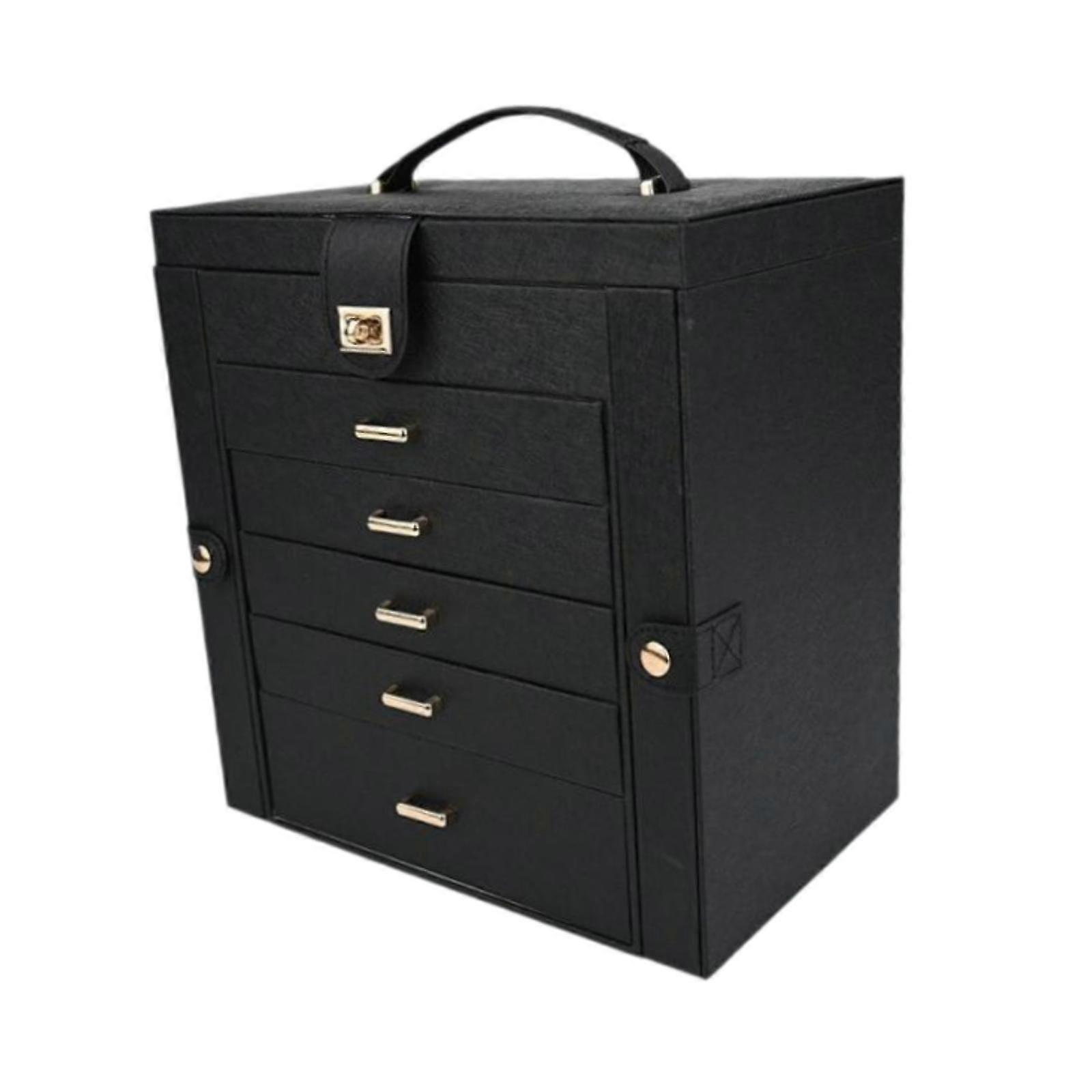 Jewelry Storage Box with 6 Drawers Jewelry Case for Anklet Glasses Bracelets Black