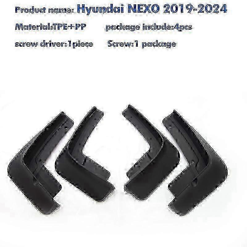 Special Features:MUDGUARD Material Type:TPE+PP Item Weight:1kg Item Height:14cm Item Width:30cm Item Length:40cm Model Name:Hyundai NEXO Model Year:2019-2024 Brand Name:NoEnName_Null Origin:Mainland China Item Type:Mudguards