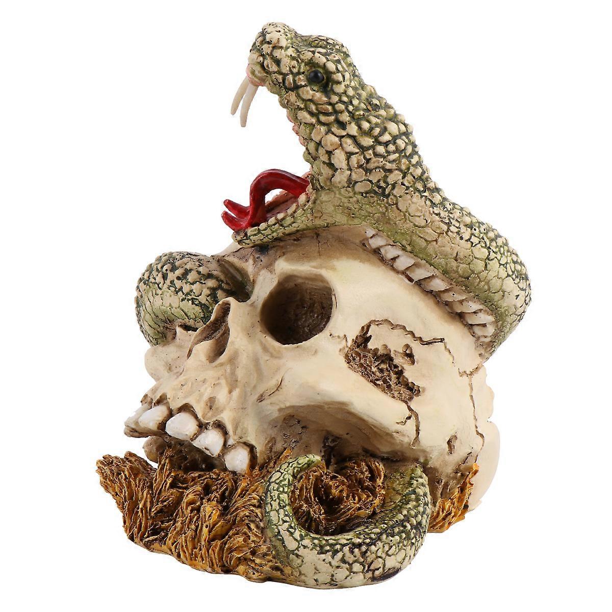 Multi Color Skull And Snake Shape Resin Ornament Ideal For Haunted House Decoration 12X9.5cm Decorative Function 1Set