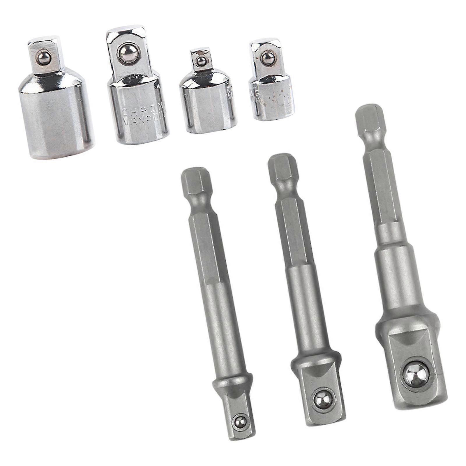 Features: Upgrade your toolkit with this versatile 4 piece Socket Adapter Set, featuring seamless drive size conversions (1/4"to 3/8",3/8"to 1/4",3/8"to 1/2",1/2"to 3/8",) and three extension rod for enhanced reach, all crafted from steel to withstand heavy duty applications. Engineered with precisions machined steel , these adapters resist corrosions and wear while maintaining structural integrity, paired with 65 73mm extension rods to tackle confined spaces effortlessly. Ideal for mechanics, DIYer enthusiasts, and professional technicians requiring tool compatibility across automotive repairs, equipment maintenance, and home improvement projects. Streamlines workshop tasks in garages, construction sites, or household repairs—perfect for accessing tight engine compartments, assembling machinery, or adjusting stubborn fasteners in hard to reach areas. Achieve secure connection every time with adapters that eliminate slippage risks, ensuring efficient torques transfer and extended tool lifespans for demanding industrial or personals use. Specifications: Component:Steel Color:Black,Silver Specification: 1/4" to 3/8", 3/8" to 1/4", 3/8" to 1/2", 1/2" to 3/8" Extension Rod: 1/4 65mm,3/8 65mm,1/2 73mm Package Includes: 4Pcs Socket Adapter 3Pcs Extension Rod note: Please allow 1mm errors due to manual measurement. Due to the differences between different monitors, the picture may not reflect the actual color of the item.