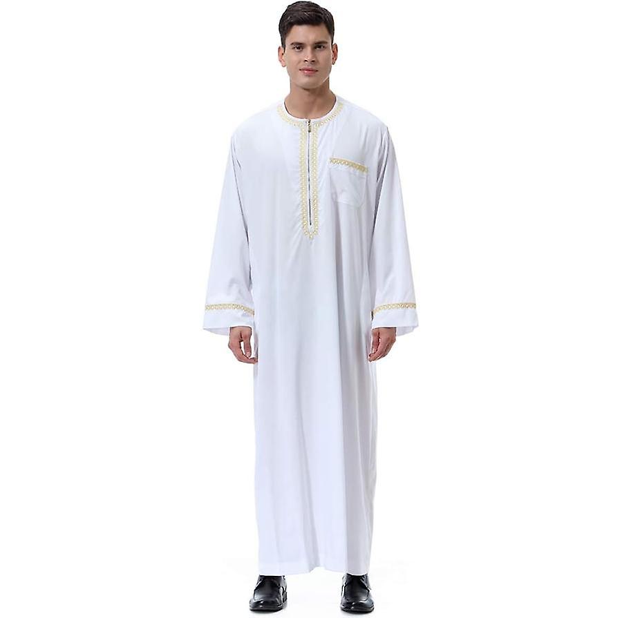 Muslim Arab Men Long Sleeve Crew Neck Thobe Thawb Caftan
