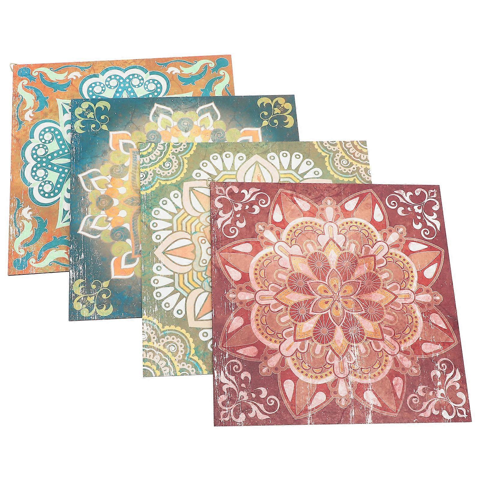 Kitchen Wall Decor Rustic Wall Wooden Board Square Home Decoration Multi 30X30cm Wall Hanging 4Set
