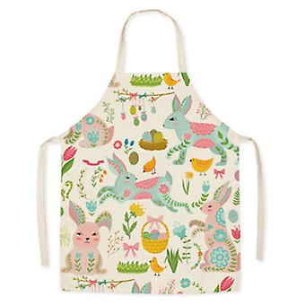 Kitchen Chef Easter Series Floral Printing Flax Apron Restaurant Cooking Bibs