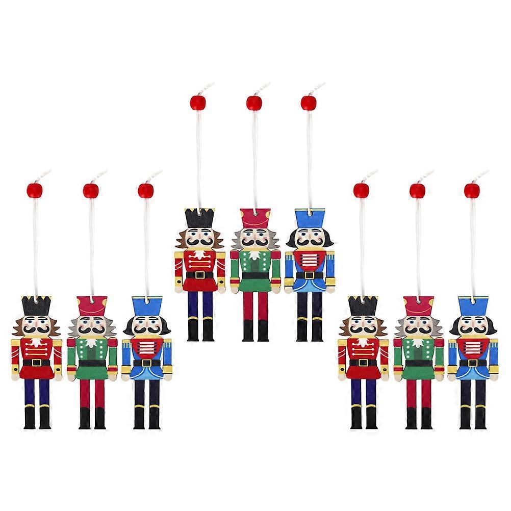 Nutcracker Pendants Wooden Soldier Shape Christmas Decoration Assorted Color 8.7X3.2X0.1CM Reusable 9Pcs