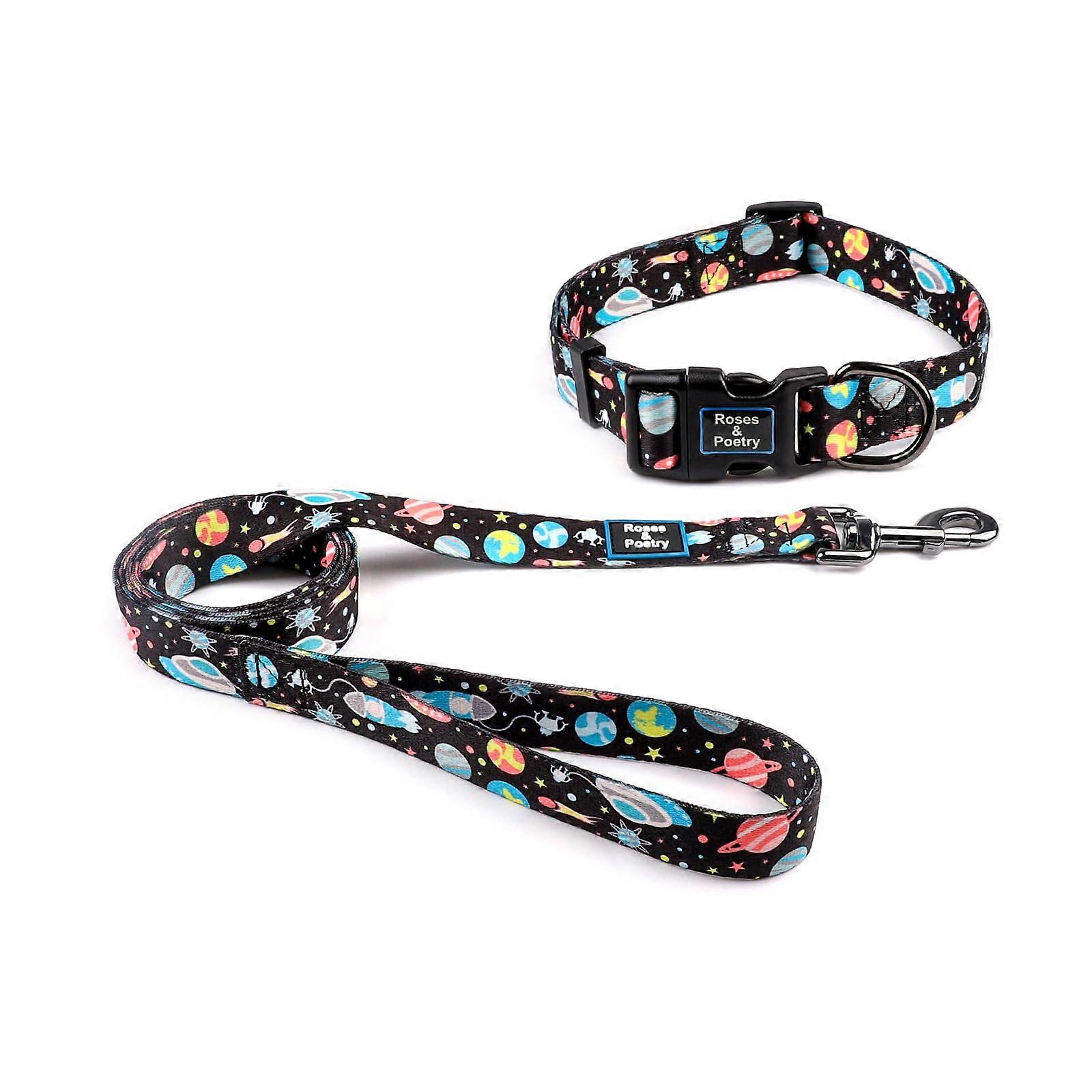 Dog Collar and Leash for Medium Large,Adjustable Blue 5ft Puppy Leash Collar for Dog Training Lead(StarM)