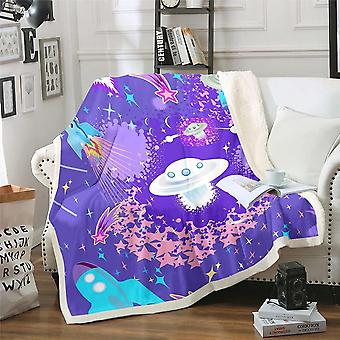 Outer Spaced Fleece Throw Blanket Universe Planeted Plush Blanket for Bed Sofa Galaxy Sherpa Blanket Breathable Starry Sky Warm Fuzzy Blanket Purple B