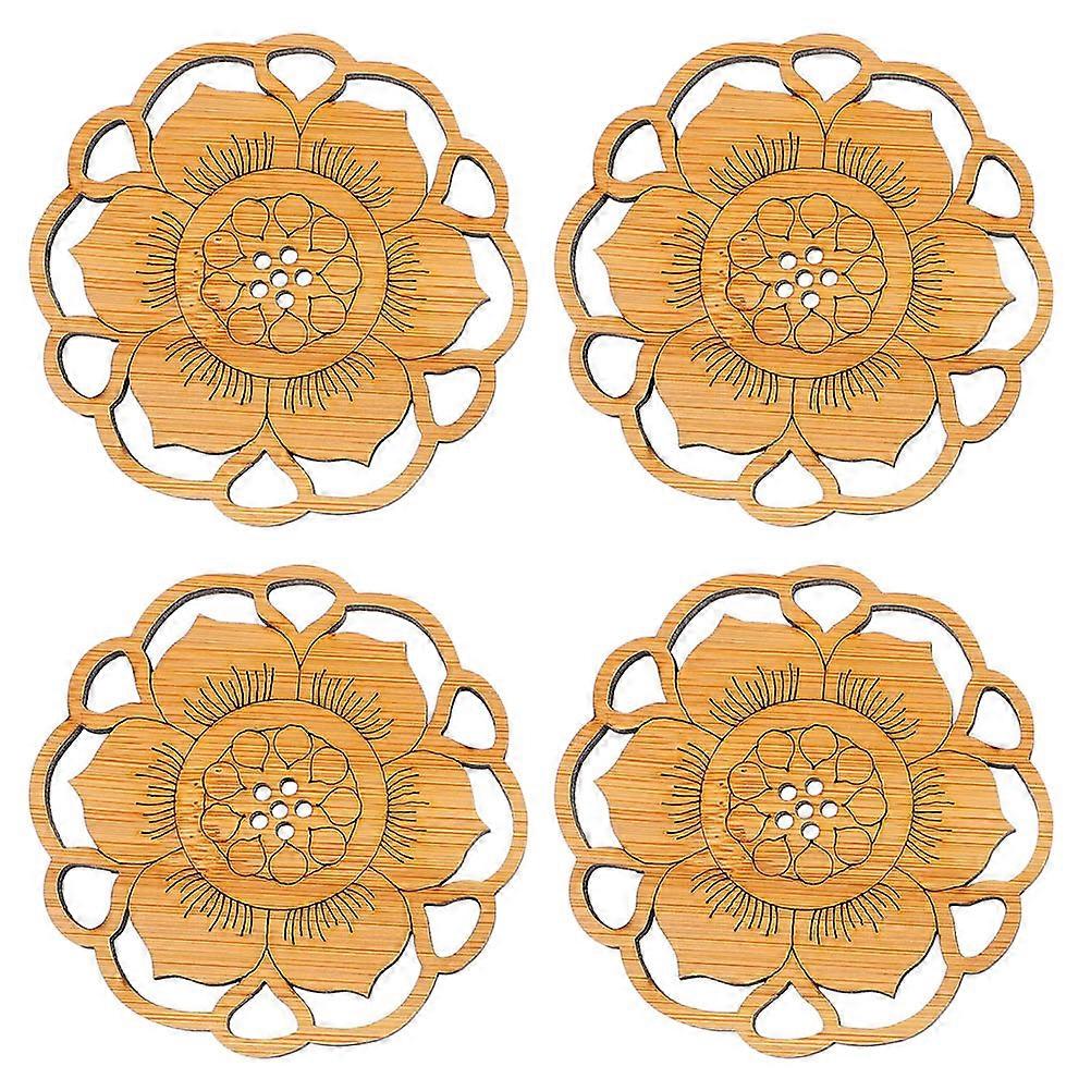 Pads Bamboo Coasters 9X9X0.5CM Thickness Ideal For Home And Restaurant Use 4Pcs