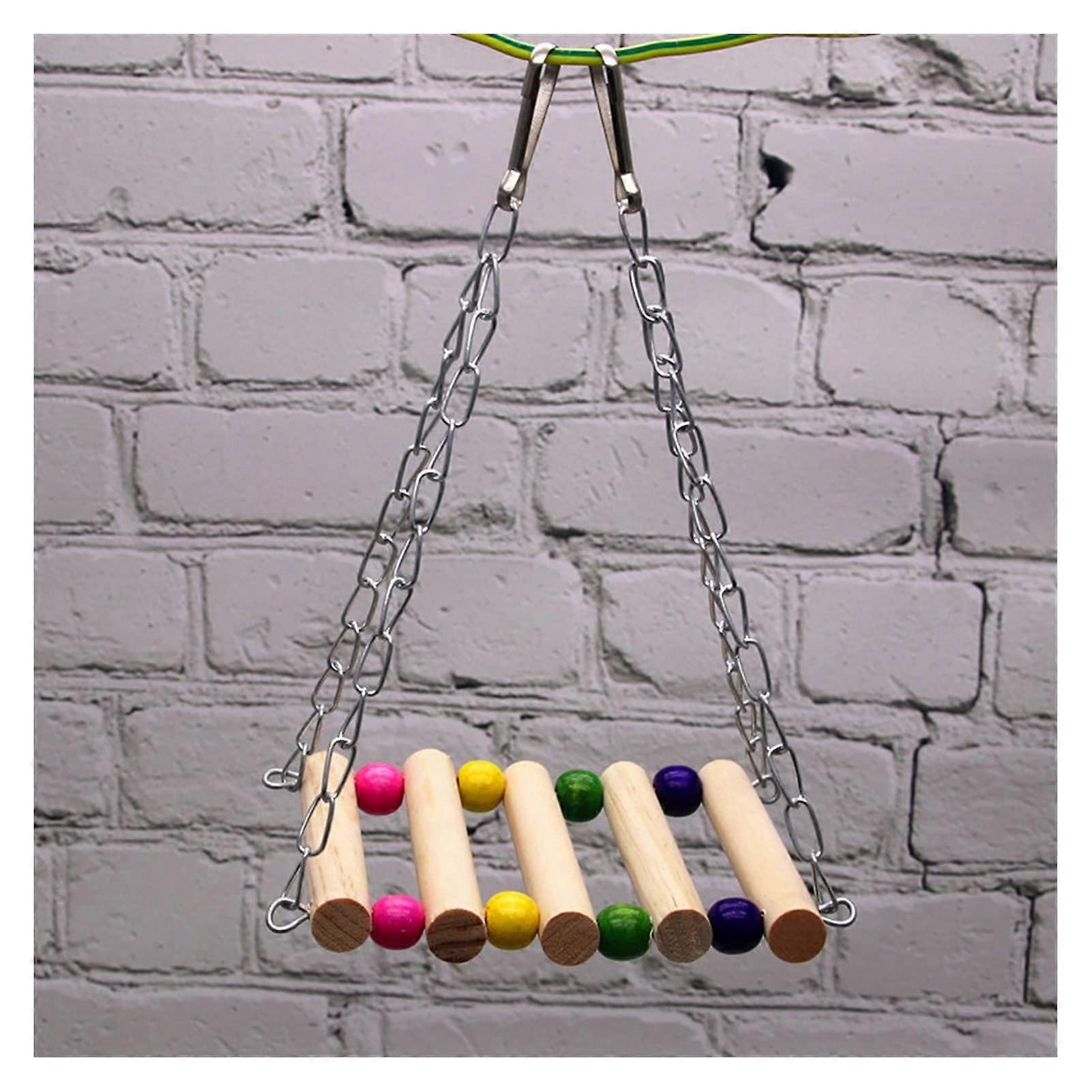 Parrot Hammock 1 Piece Wooden Swing Toy for Birds Climbing Hanging Ladder Bridge Rainbow Color for Macaw Cage