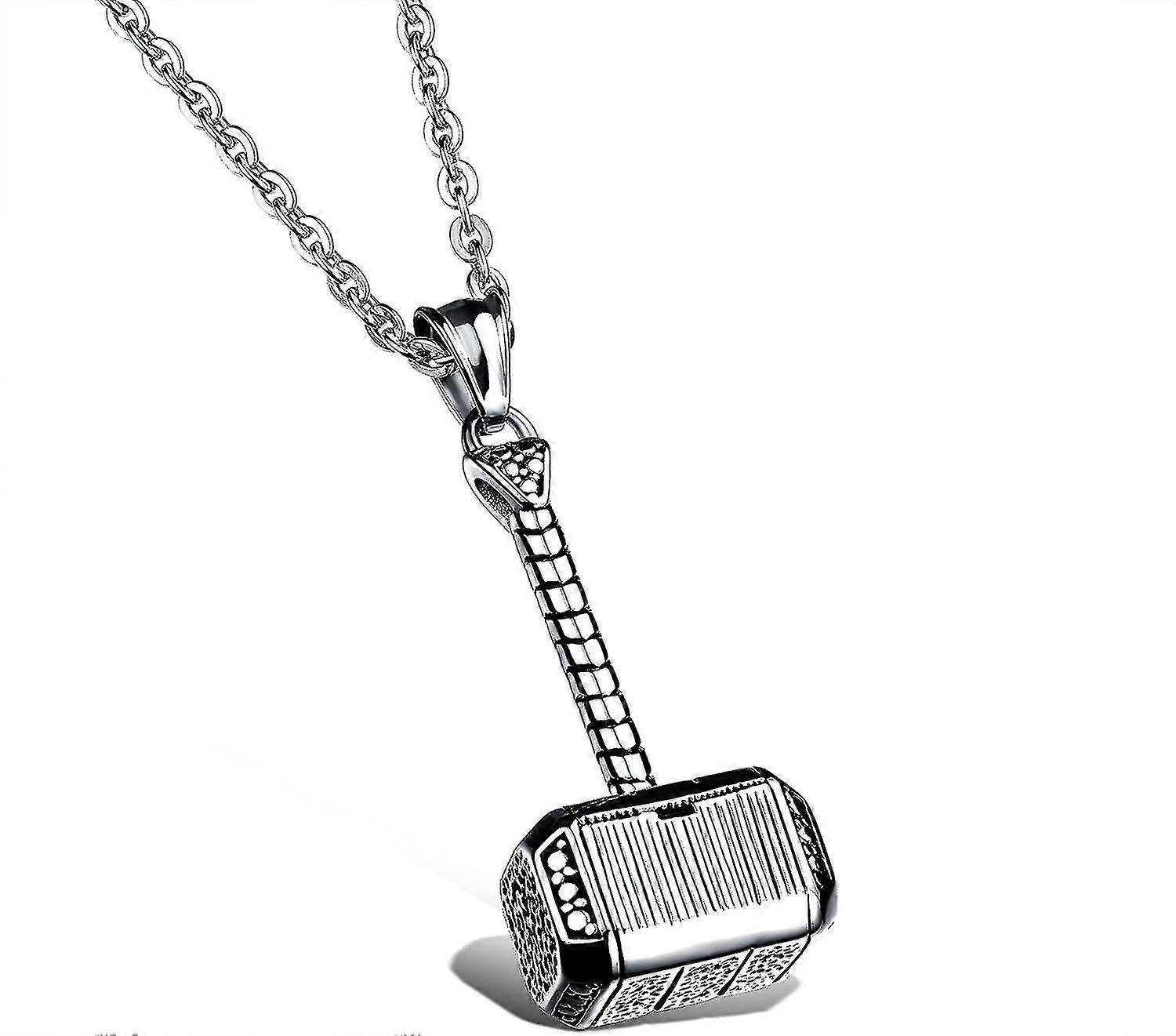 Stainless Steel Punk Rock Mens Handmade Thors Hammer Pendant Necklace For